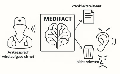 Kein Mensch kann diese Gespräche je anhören; nicht einmal ein verärgertes Menschenohr! Nur MEDIFACT ist in der Lage, diese Daten zu Vergütungsanfragen, Operationsberichte und zu Texten für das Elektronische Patientendossier zu verarbeiten und den irrelevanten Anteil zuverlässig zu vernichten.