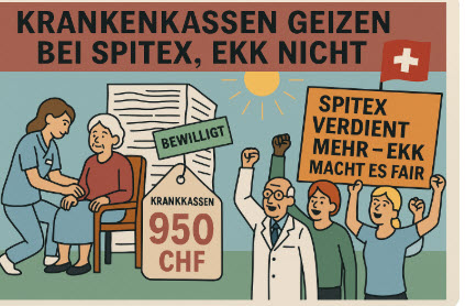 Gleichzeitig schikanieren die Krankenkassen die Spitex mit Papierfluten und Bewilligungspflichten, als wäre sie ein Kostenproblem – während sie anderswo Wucher-Vergütungen ohne Prüfung bezahlen.